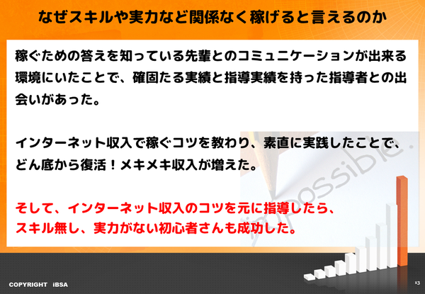 ・ スキル無し、実力がまったく無い初心者でも、インターネット収入なら稼げるということ。